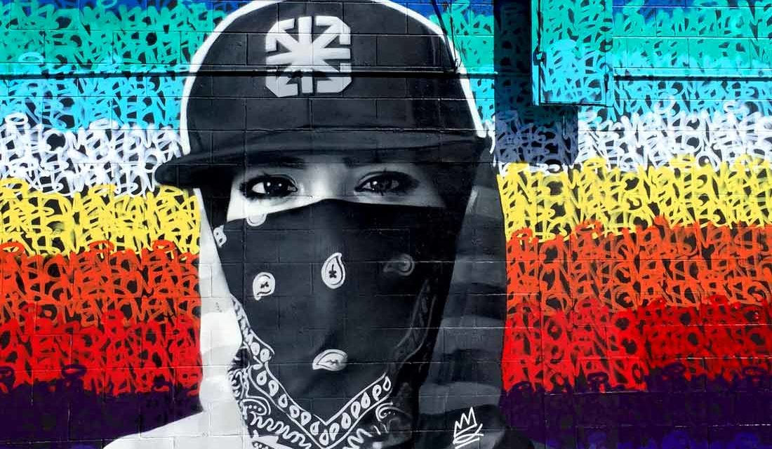 Royyal Dog with the community service in East Hollywood. An amazing collaboration during his trip from Korea, combining forces with street artist Menso One. Located on the corner of Heliotrope and Santa Monica Blvd. The entire mural was created using MTN…