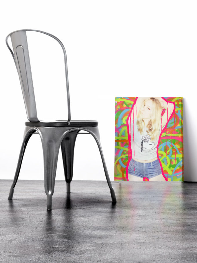Canvas24 x 30 inches. Multi-color spray paint, acrylic, collage, on Premium Cotton Canvas finished with a plexiglass-like resin coat. Signed by Graham Nichols. Edition of 1. Certificate Of Authenticity included.
